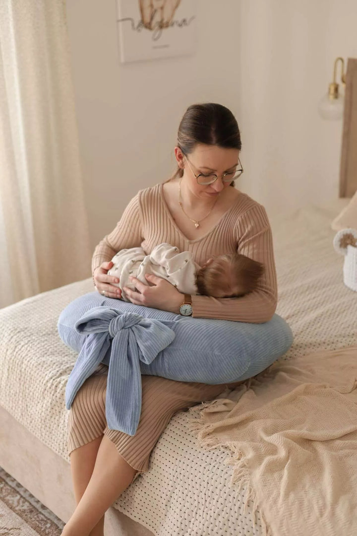 Introducing our Corduroy Velvet Nursing Pillow - a fusion of luxury, comfort, and practicality, crafted to support mum and baby through both breastfeeding and bottle-feeding journeys. Designed for those in search of the quintessential nursing pillow, this product merges style with functionality to offer a crucial addition to your nursing essentials.