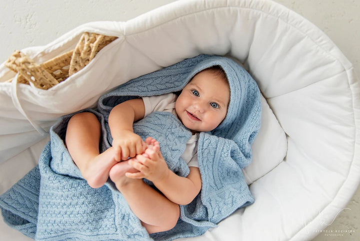 Merino wool reacts to the surrounding environment and temperature. During colder weather, the fibres will shrink improving the thermal insulation of the blanket. This blanket is suitable for even the coldest months with frost and strong winds - your baby will be cosy in all weather.
