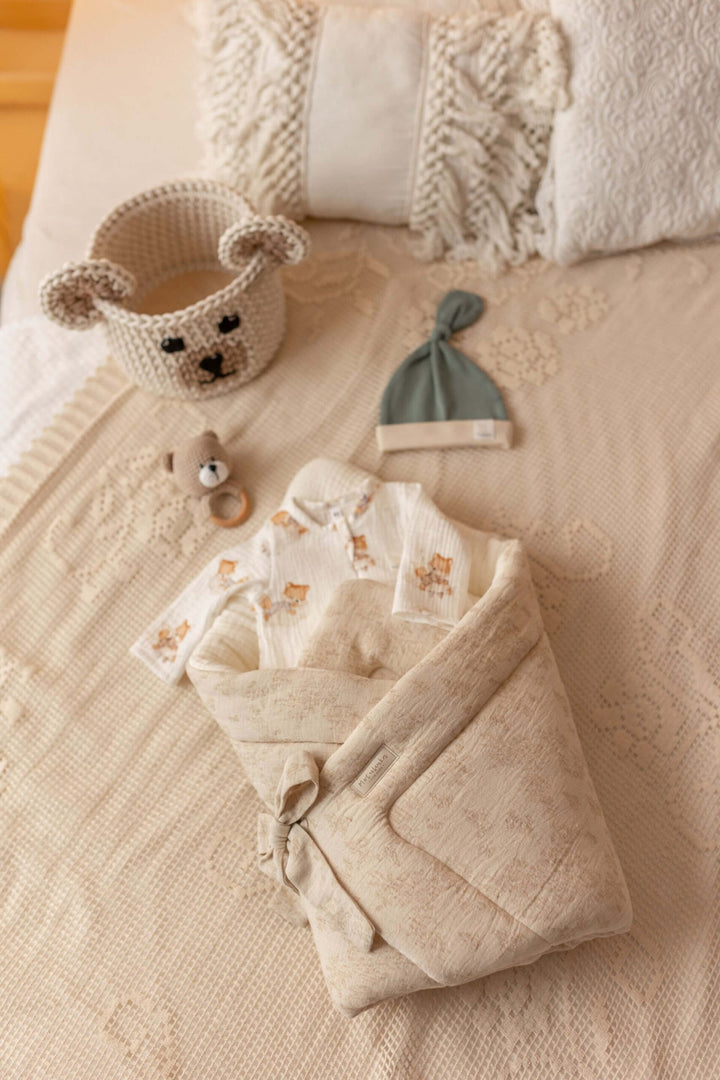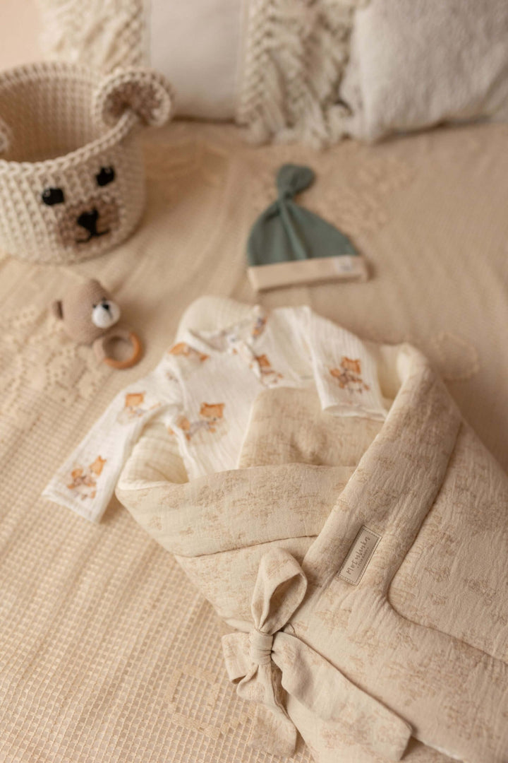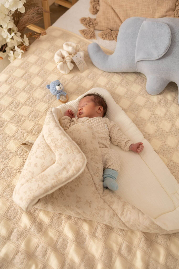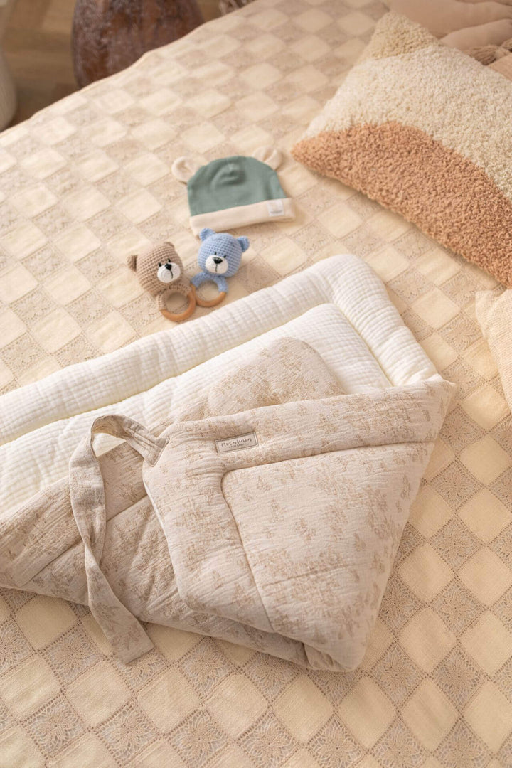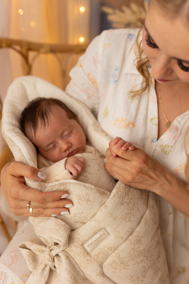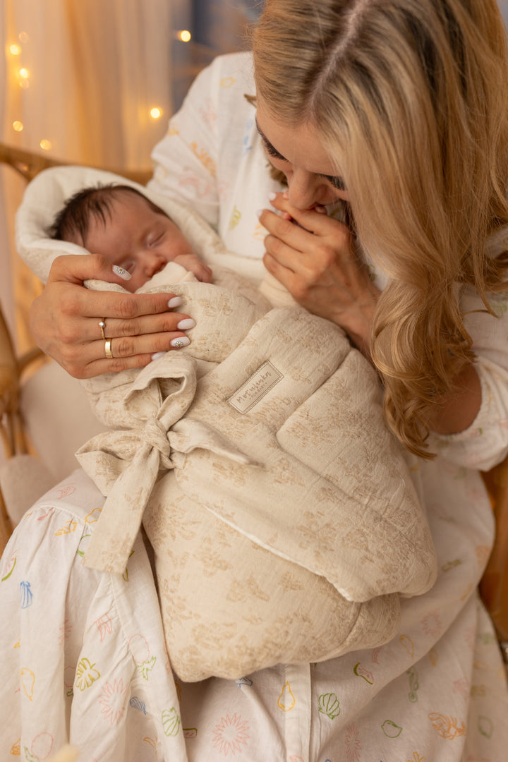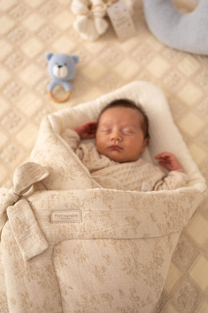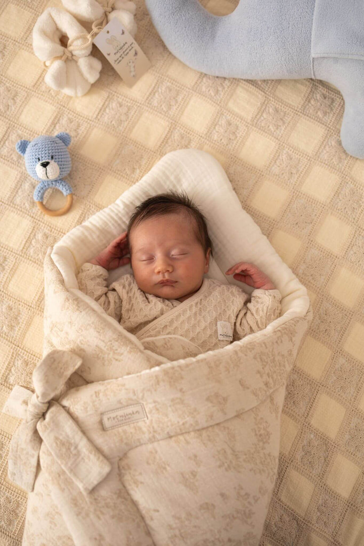 Designed for warmth, security, and timeless elegance, our baby wrap swaddle from the Baby Natural collection is the perfect companion for your little one. Made from a high-quality blend of cotton, linen, and premium muslin, this breathable and soft swaddle ensures comfort while keeping your baby gently wrapped. Whether for sleep, cuddles, or on-the-go, its vintage-inspired design makes it a beautiful and practical nursery essential.
