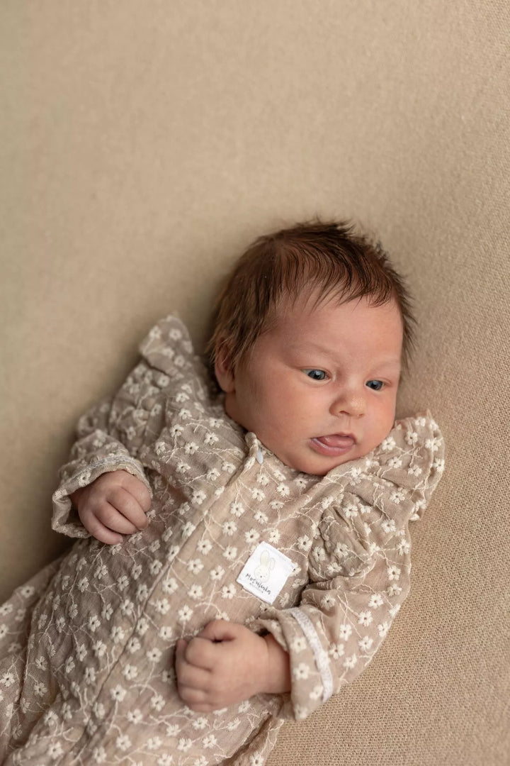 Our light and soft baby rompers with embroidered flowers are designed to provide maximum comfort for your baby. It's airy and breathable, made from the softest 100% cotton.