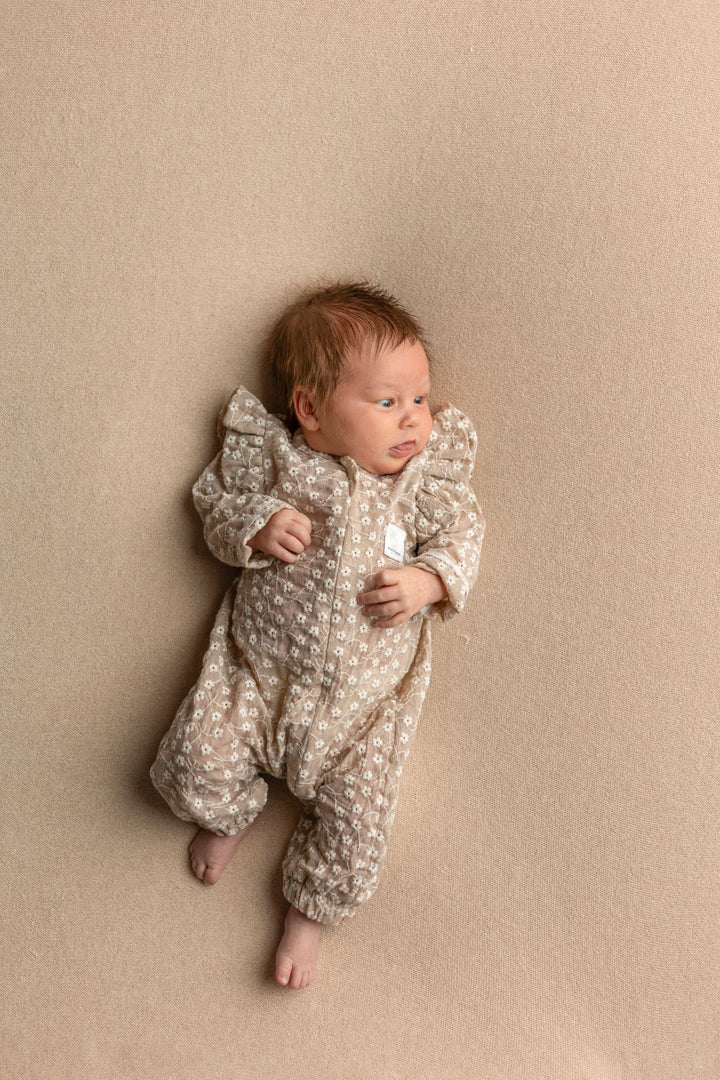 Soft Cotton Rompers with Embroidered Flowers, Zip Up - Sand (0-12 months)